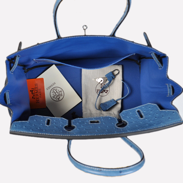 - Hermes Birkin 35CM Medium Blue Ostrich stripes leather(Silver)