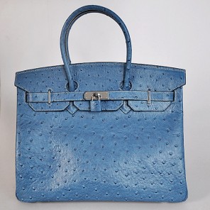 Hermes Birkin 35CM Medium Blue Ostrich stripes leather(Silver)