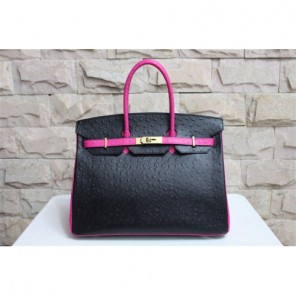 Hermes Birkin 35CM Ostrich leather Gold hardware H35 Black&Peach
