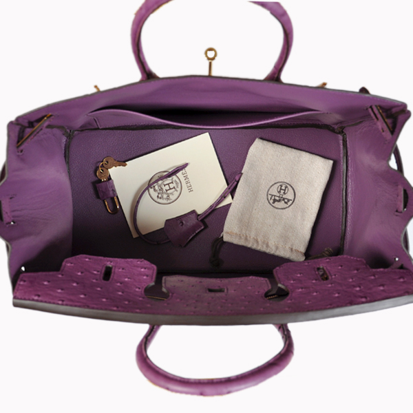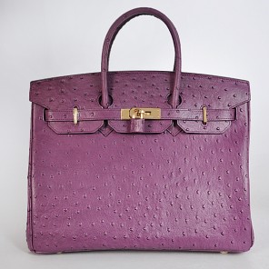 - Hermes Birkin 35CM Purple Ostrich stripes leather(Gold)