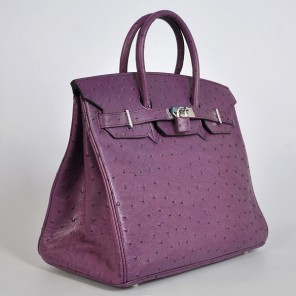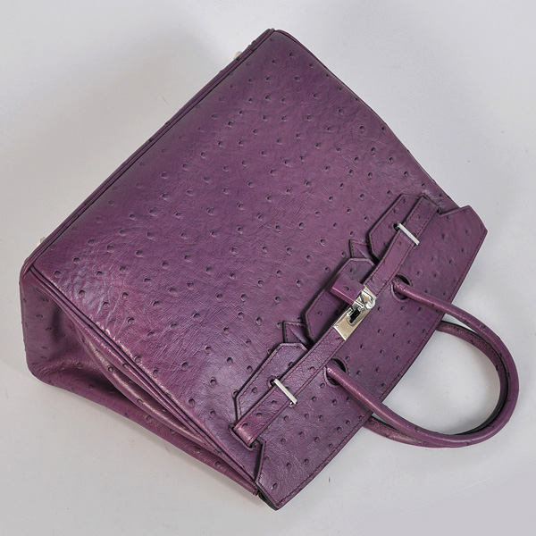 - Hermes Birkin 35CM Purple Ostrich stripes leather(Silver)