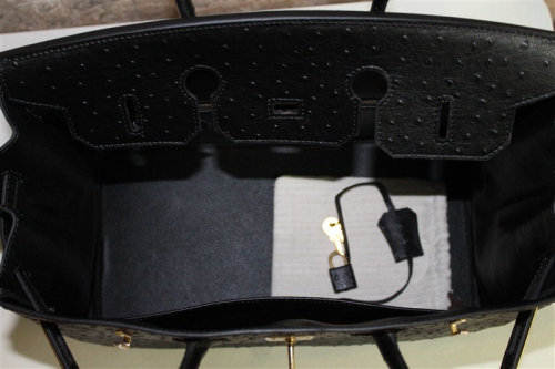 • Hermes Birkin 35CM Tote Bag Ostrich Leather Black with Gold hardware