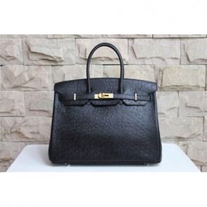 Hermes Birkin 35CM Tote Bag Ostrich Leather Black with Gold hardware