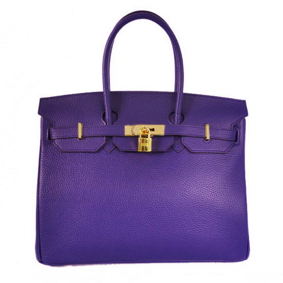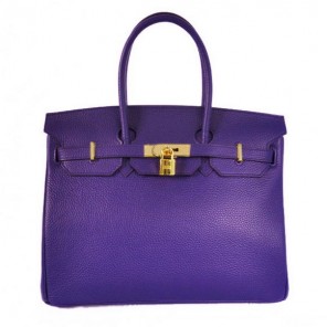 Hermes Birkin 35CM Tote Bags Granulate Calf Leather H35 Iris Purple Gold