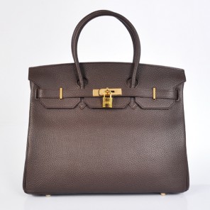 - Hermes Birkin 35CM clemence leather in Dark Brown with Gold hardware