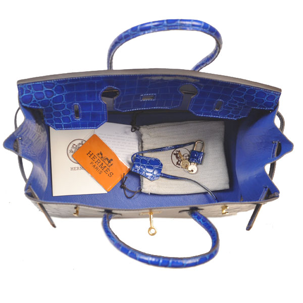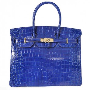 - Hermes Birkin 35CM high light Crocodile leather in Blue with Gold hardware