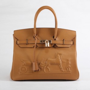 Hermes Birkin 35CM with Embossed logo Handbag Light Coffee 6089
