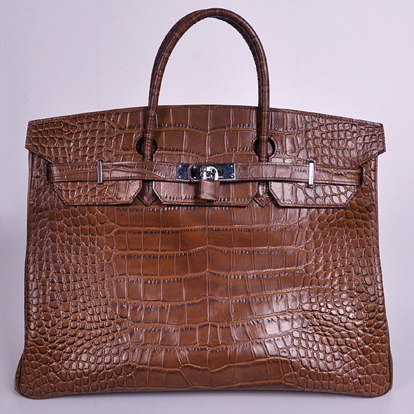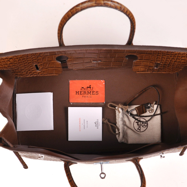 - Hermes Birkin 40CM Crocodile stripes leather in Coffee with Silver hardware