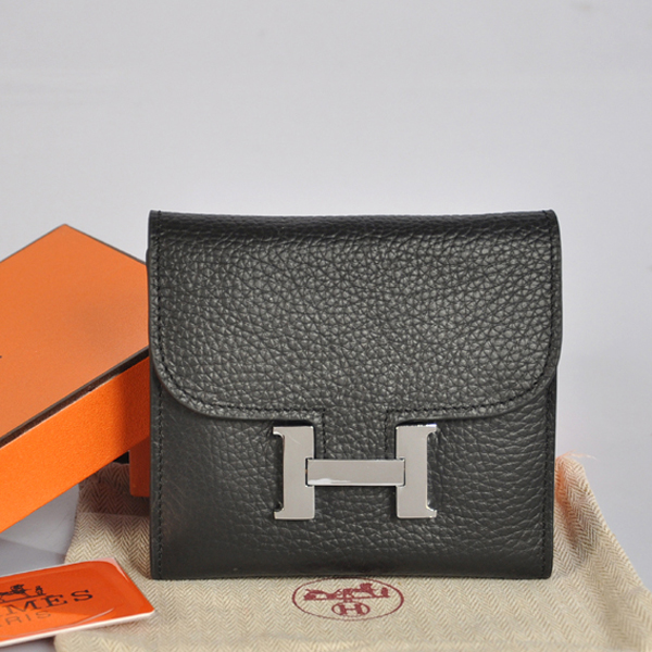 Hermes Constance Wallet clemence leather in Black
