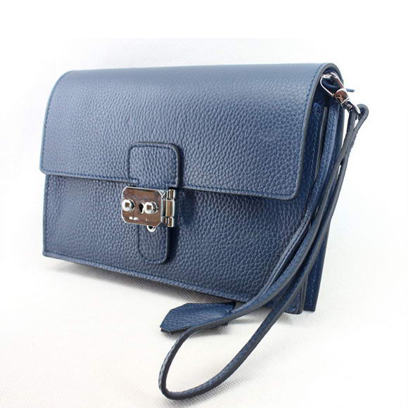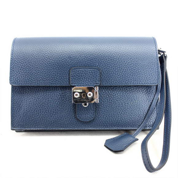 Hermes Jet Pochette Clutch Bag Clemence Leather Dark Blue