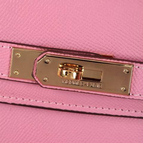 Hermes Kelly 32cm Shoulder Bags Grained Leather Pink