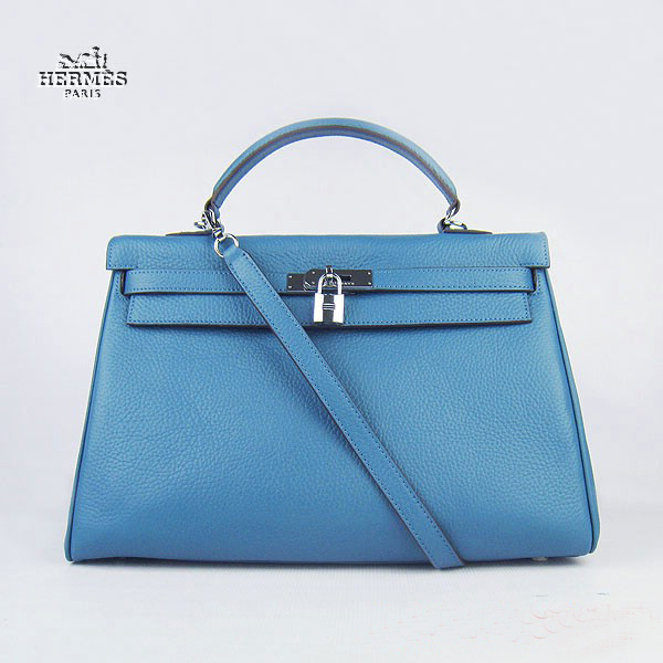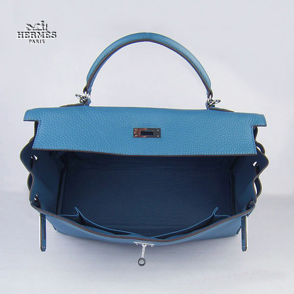 Hermes Kelly 35cm Togo Leather Bag Blue 6308 Silver Hardware
