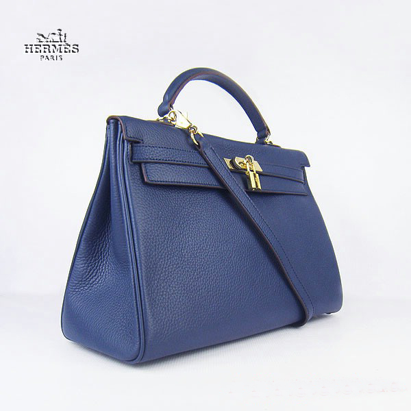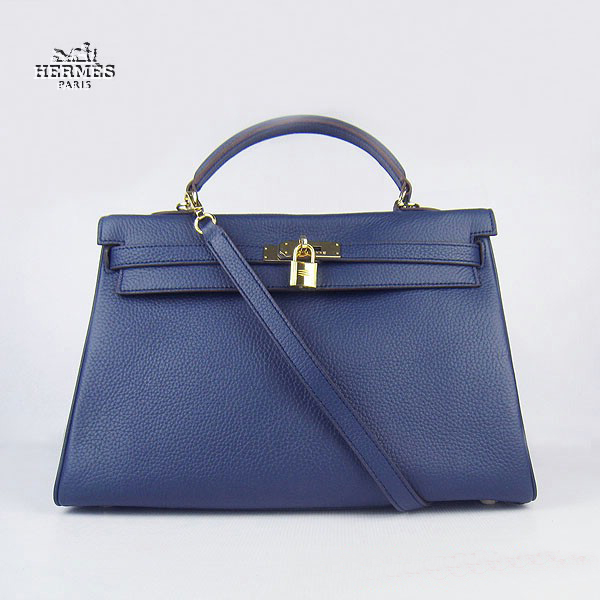 Hermes Kelly 35cm Togo Leather Bag Dark Blue 6308 Gold Hardware