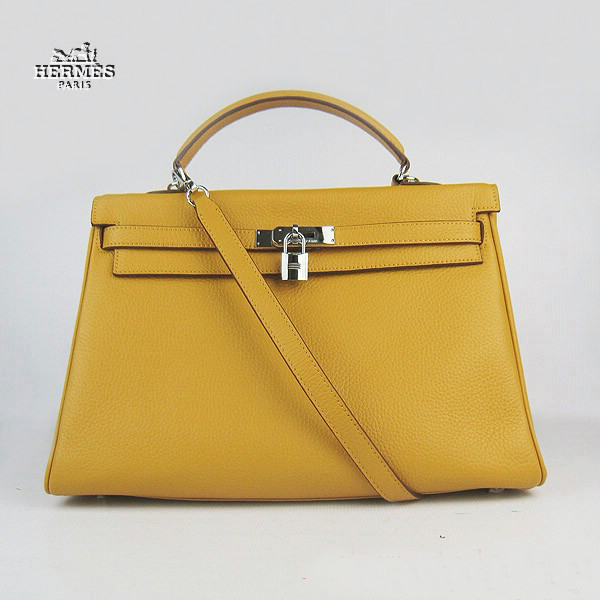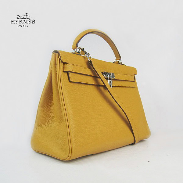 Hermes Kelly 35cm Togo Leather Bag Yellow 6308 Silver Hardware