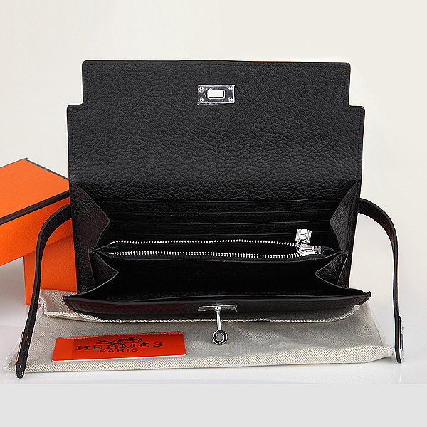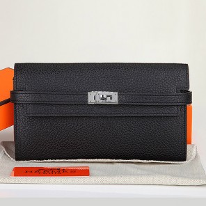 Hermes Kelly Original Clemence Leather Bi-Fold Wallet A708 Black