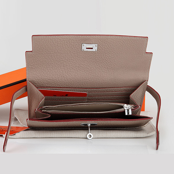 Hermes Kelly Original Clemence Leather Bi-Fold Wallet A708 Light Gray