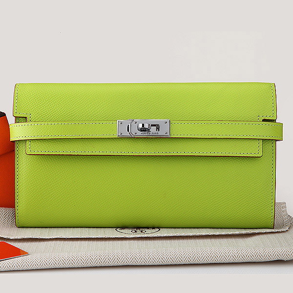 Hermes Kelly Original Saffiano Leather Bi-Fold Wallet A708 Grass Green