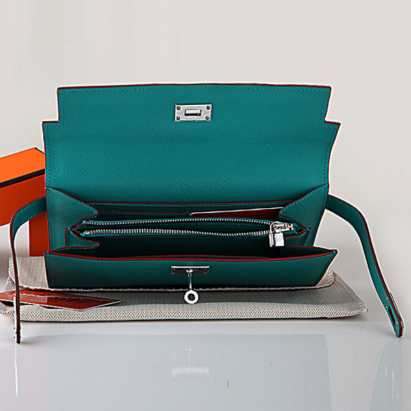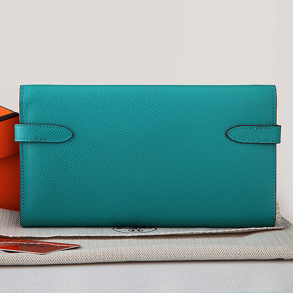 Hermes Kelly Original Saffiano Leather Bi-Fold Wallet A708 Lake Green