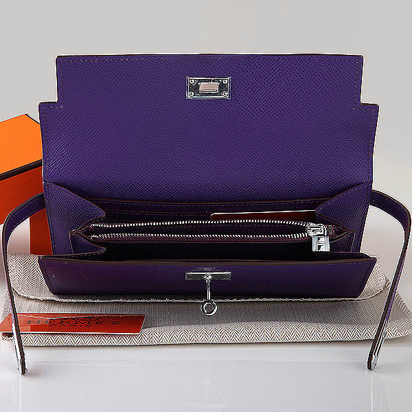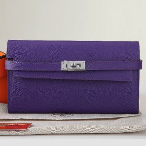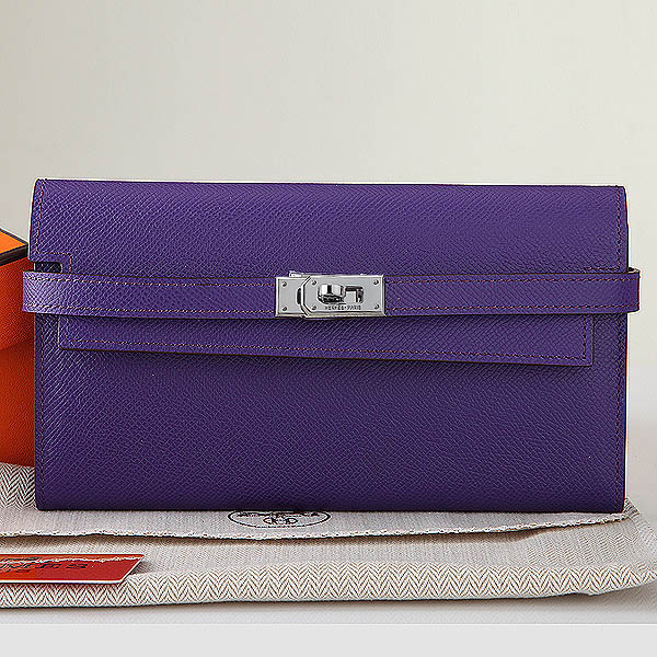 Hermes Kelly Original Saffiano Leather Bi-Fold Wallet A708 Purple