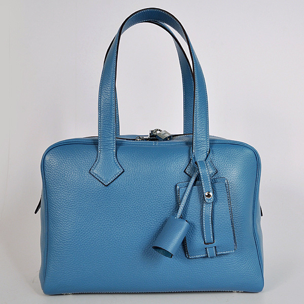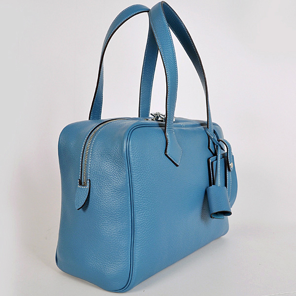 - Hermes Victoria Bag clemence leather in Medium Blue with Silver hardware