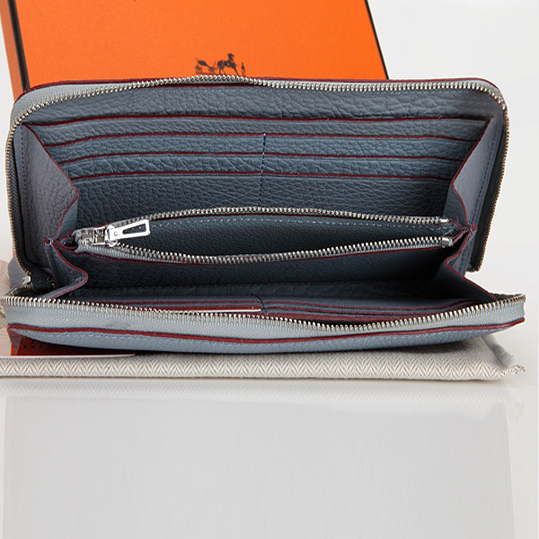 Hermes Zipper Wallet Original Clemence Leather A309 Sky Blue