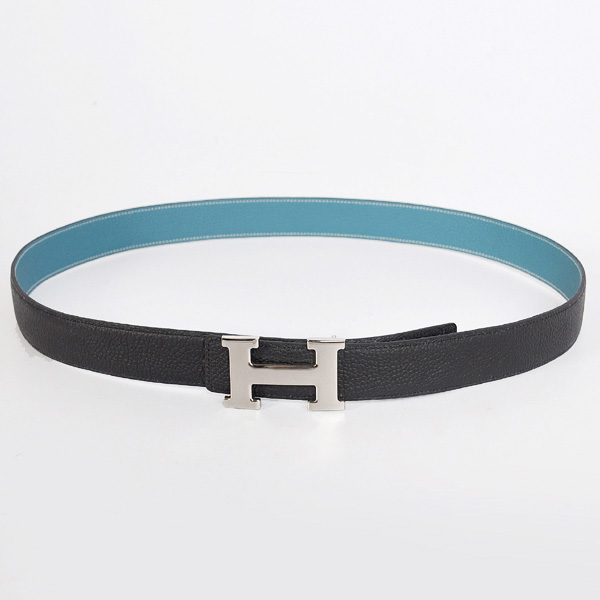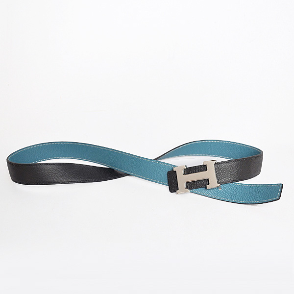 Hermes belt leather in Black/Medium Blue with H Silver Buckle