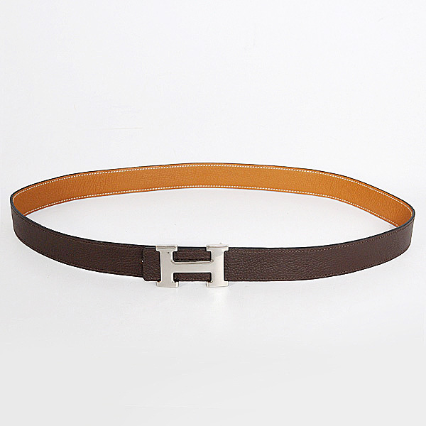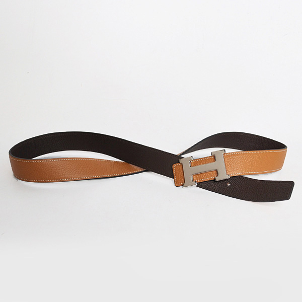 Hermes belt leather in Camel/Dark Brown with H Silver Buckle