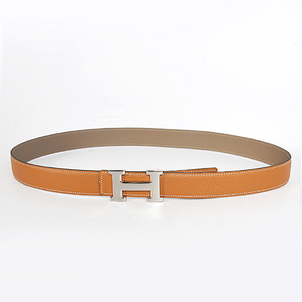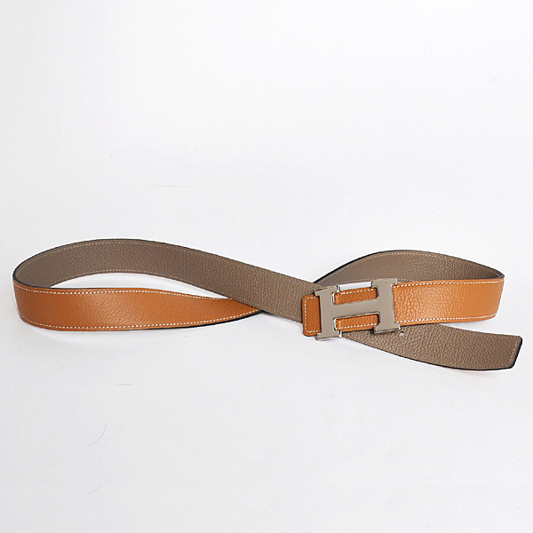 Hermes belt leather in Camel/Dark Grey with H Silver Buckle