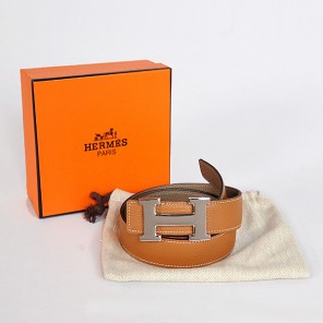 Hermes belt leather in Camel/Dark Grey with H Silver Buckle Come with Hermes authenticity card, Hermes tags,Hermes belt dust bag, Hermes belt box and Hermes care booklet