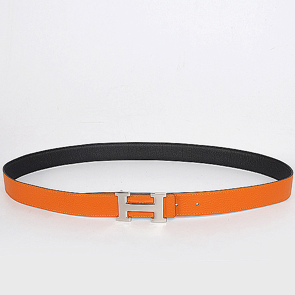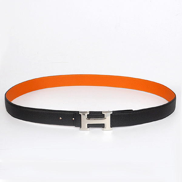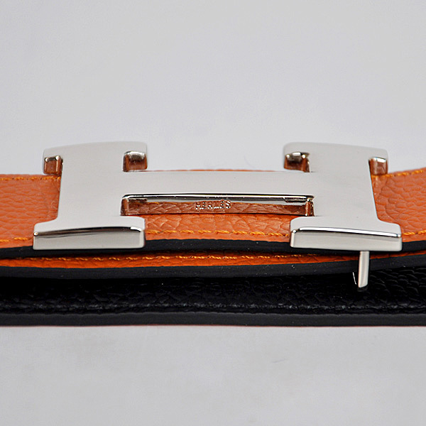 Hermes belt leather in black/Orange with H Silver Buckle