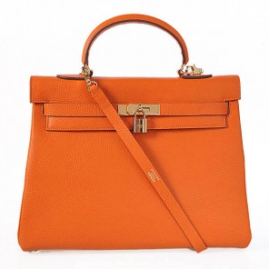Hermes kelly 35CM clemence leather in Orange with Gold hardware