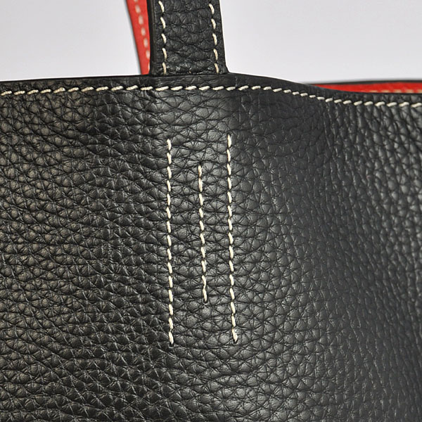 Hermes shopping bag clemence leather in Black/Flame Come with Hermes authenticity card, Hermes tags,Hermes dust bag and Hermes care bookle