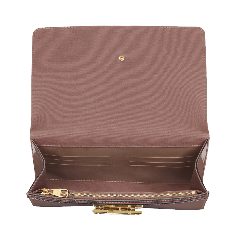 Whether for day or evening events,the louise is the height of sophistication thanks to its smooth,shiny and subtly sparkling patent leather,it is crowned by an elegant gold clasp emblem.