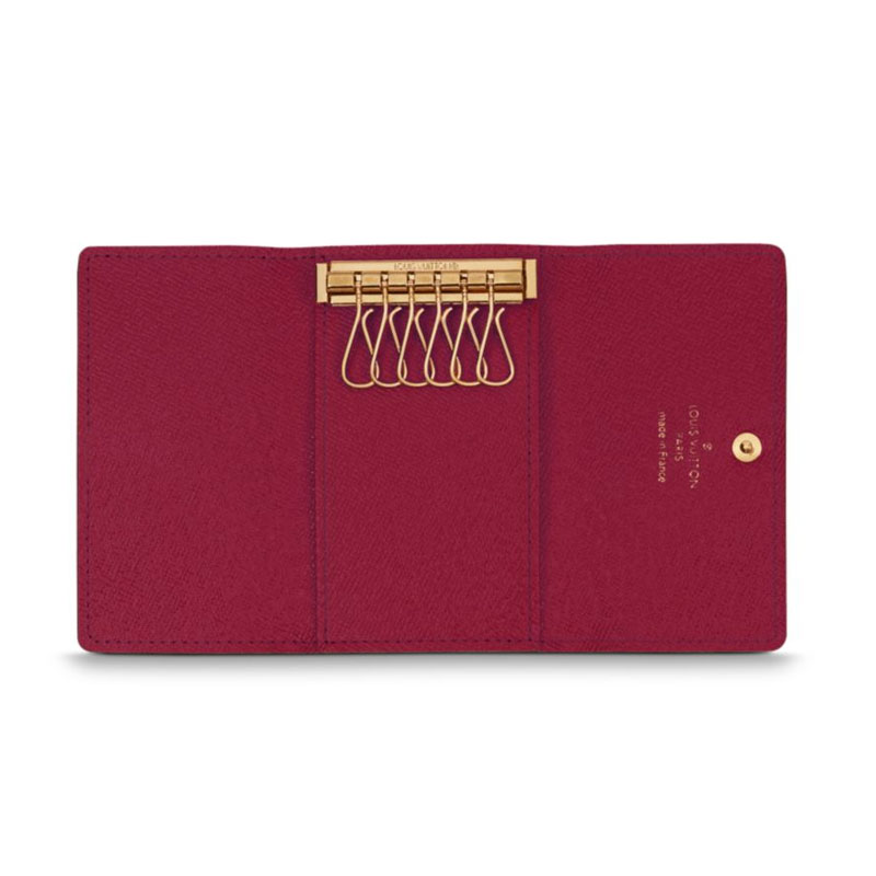 This compact case holds six keys on individual brass hooks. In Monogram canvas, it is a practical accessory for a handbag or briefcase.
