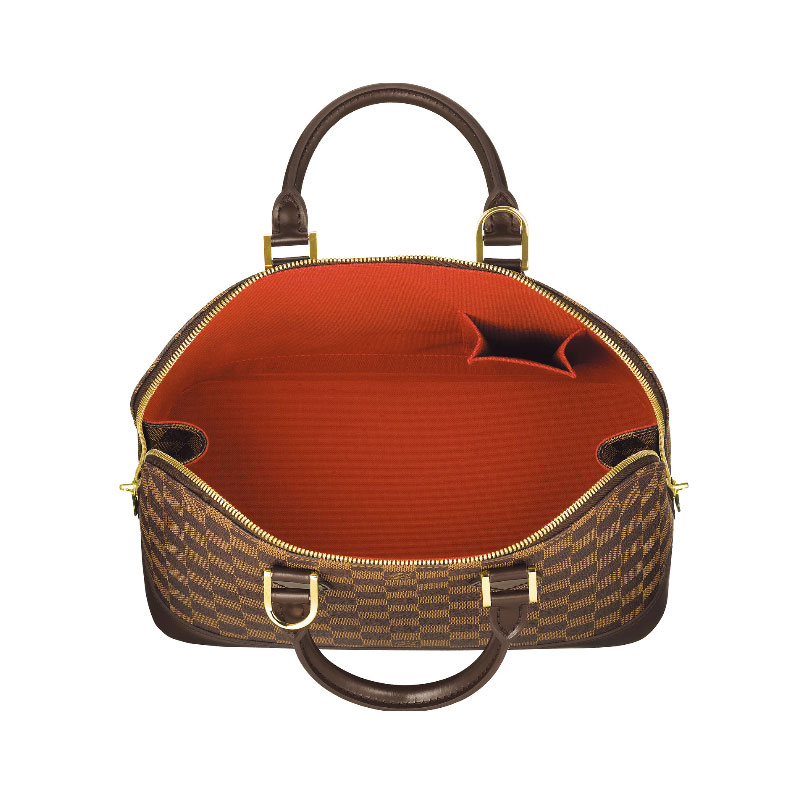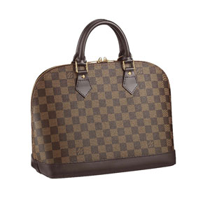 Inspired by a shape invented by Gaston Vuitton in the 1930s, Alma is now a classic. This hand-held bag in Damier canvas features an interior pocket and a cell phone pocket.