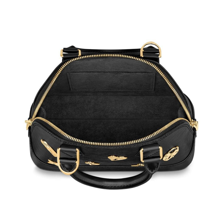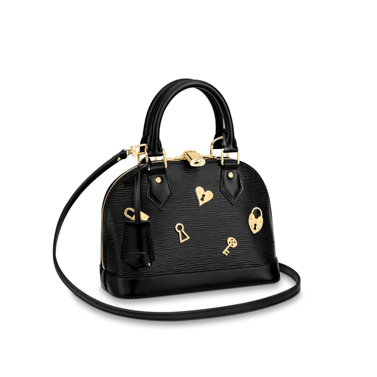 Charming is indeed the word for the Alma BB Love Lock edition. Crafted from signature Epi leather, this trend-setting bag is studded with finely wrought Monogram Flowers, padlocks and keys: all symbols of the House – and of romance. The Love Lock story plays out this season on an exclusive capsule collection of handbags and leather goods.