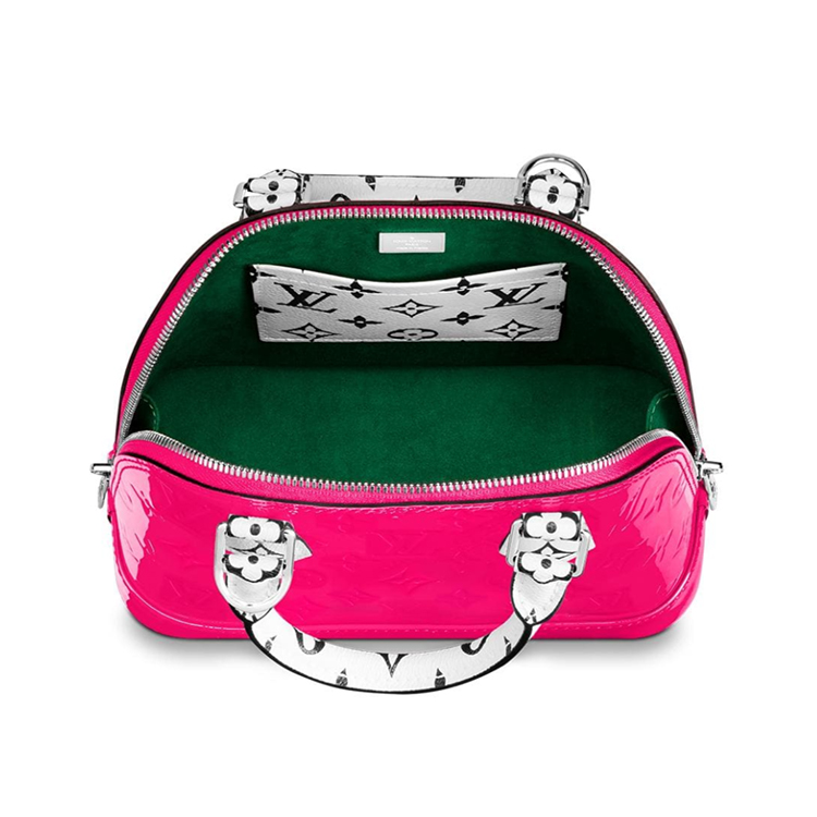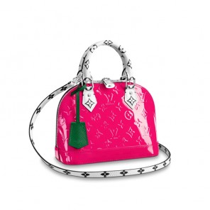The Alma BB handbag in Monogram Vernis gets a Pop-inspired twist for Summer 2019. The glossy embossed patent is accented with colorful Epi leather and touches of new black-and-white Monogram canvas trim. In bold Berlingot Pink it is an eye-catching accessory for the season鈥檚 looks, carried by hand or worn on its long leather strap.