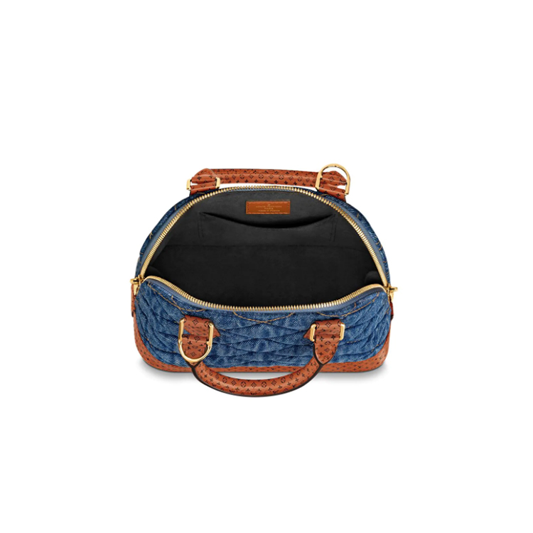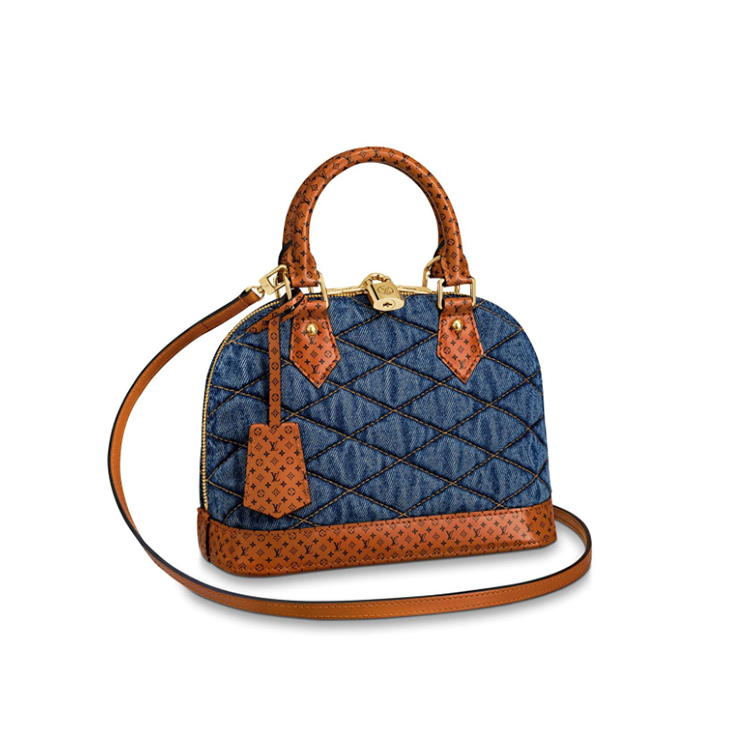 The timeless Alma BB handbag is updated for Pre-Fall 2019 with Malletage-quilted dark denim canvas. The tan calf-leather handles and trim are printed with a minuscule Monogram motif, a playful signature touch. The charming BB size can be styled in a multitude of ways: carried by hand, slung over a shoulder or worn cross-body.