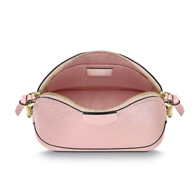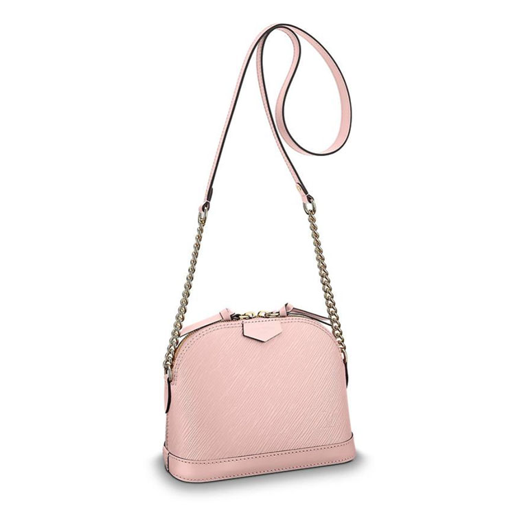 This adorable version of the ladylike Alma in grained Epi leather is a versatile day-to-evening piece. Trendy yet timeless, it features a long strap – perfect for cross-body wear – adorned with a golden-chain detail. Signatures include an embossed LV logo and a “Louis Vuitton Paris” patch.