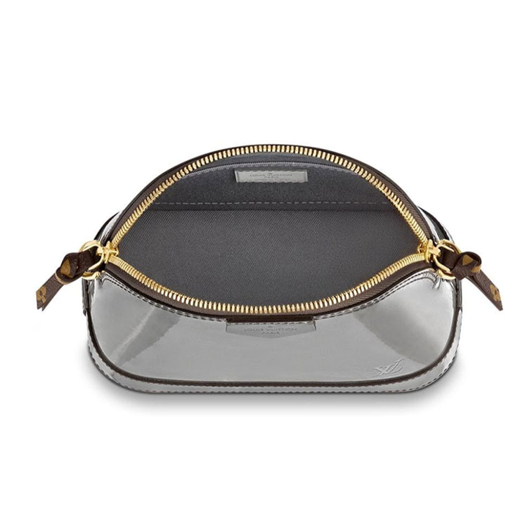 For Winter 2018, Louis Vuitton offers a new take on the iconic Alma handbag, with its precious chain, reinterpreting it in a compact Mini size. Fashioned of glossy Vernis Miroir patent leather with an understated Louis Vuitton embossed front patch and crafted Monogram-canvas zip pullers, this adorable handbag is a very feminine accessory.