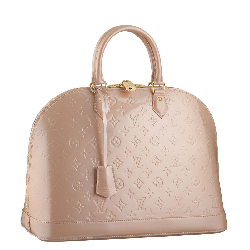 Crafted in Monogram Vernis leather, Alma MM, a reinterpretation of an icon, is revisited for a glamorous look. This bag has a double zipper for easy opening and closure, and a padlock for added security.