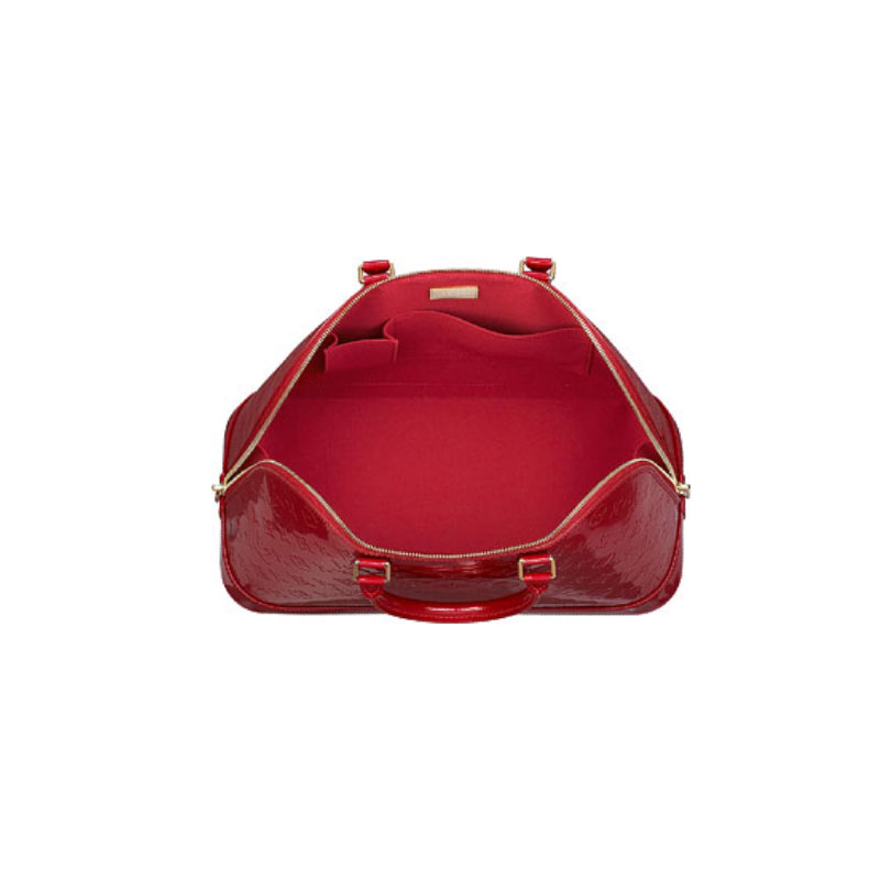 Crafted in Monogram Vernis leather, Alma MM, a reinterpretation of an icon, is revisited for a glamorous look. This bag has a double zipper for easy opening and closure, and a padlock for added security.