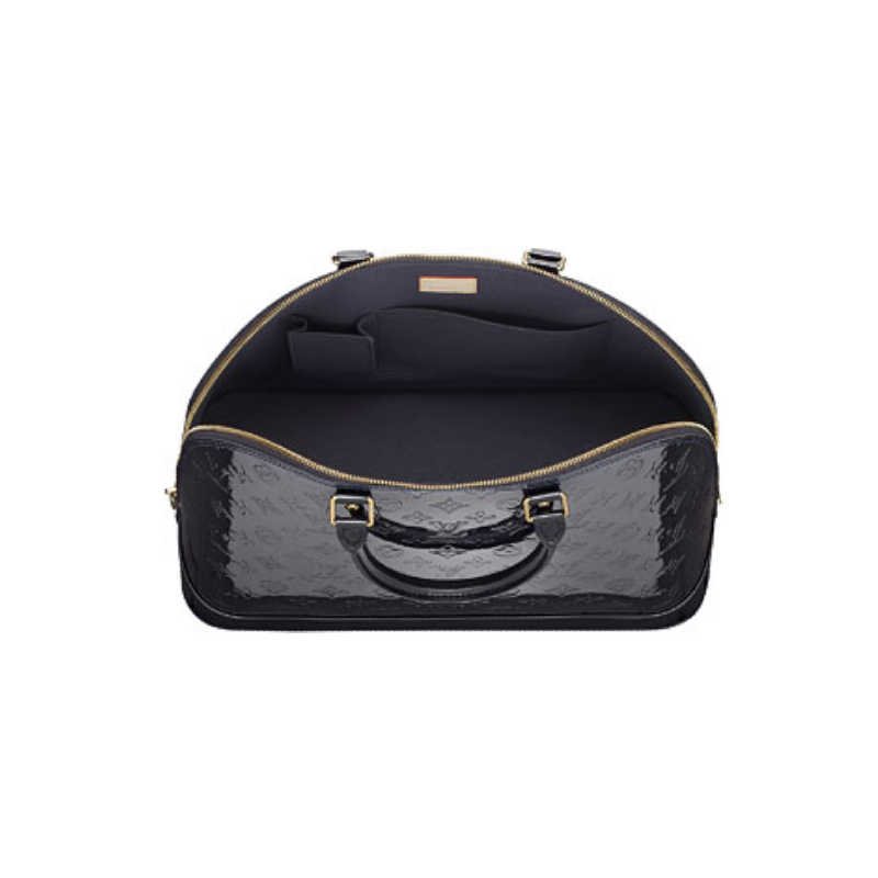 Inspired by the shape invented in the 30s by Gaston Vuitton, the Alma MM is a classic of the House. Hand held, this bag is covered with Monogram Vernis leather and is closed with a padlock.