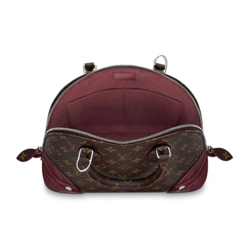 Nicolas Ghesquiere first used Shiny Monogram on low boots for its Fall 2014 collection. Now the designer has transposed this experimental material to the iconic Alma, giving a rock touch to this timeless bag. Stitched leather corners are another runway-inspired touch, alluding to the cheeky kneepads seen at the Summer 2015 show. The leather accents lend the piece an edgy urban vibe. With multiple carry options, this new Alma goes everywhere, it鈥檚 a perfect bag for life in the city.