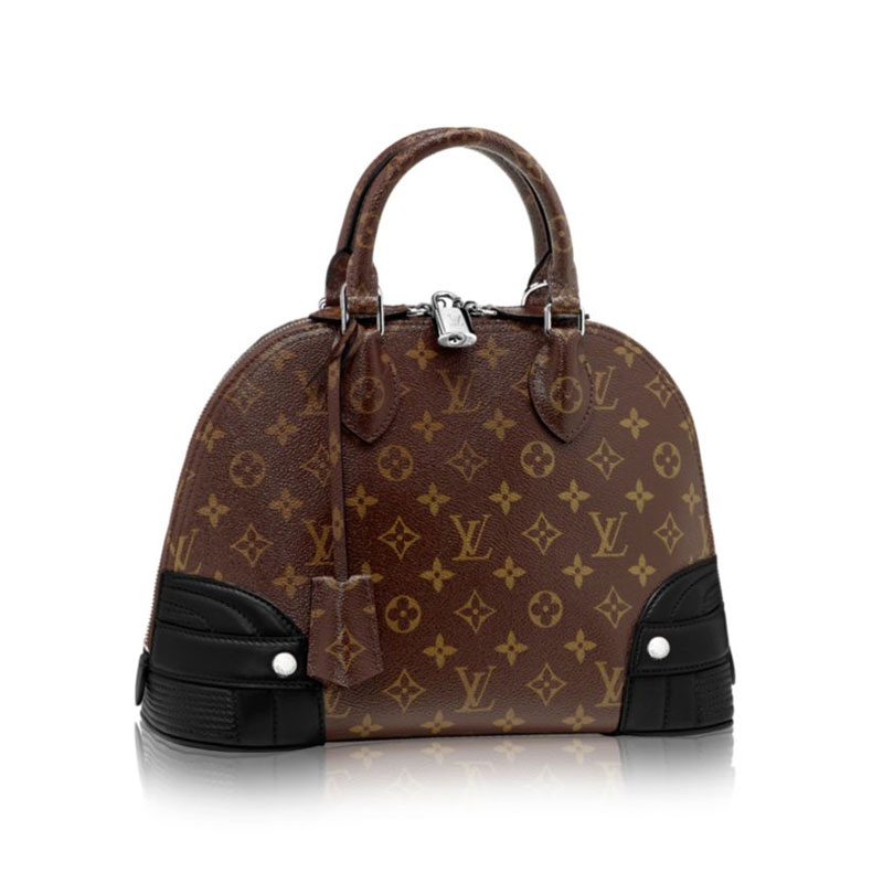 Nicolas Ghesquiere first used Shiny Monogram on low boots for its Fall 2014 collection. Now the designer has transposed this experimental material to the iconic Alma, giving a rock touch to this timeless bag. Stitched leather corners are another runway-inspired touch, alluding to the cheeky kneepads seen at the Summer 2015 show. The leather accents lend the piece an edgy urban vibe. With multiple carry options, this new Alma goes everywhere, it鈥檚 a perfect bag for life in the city.