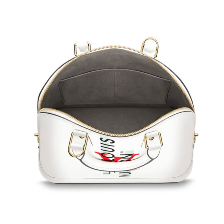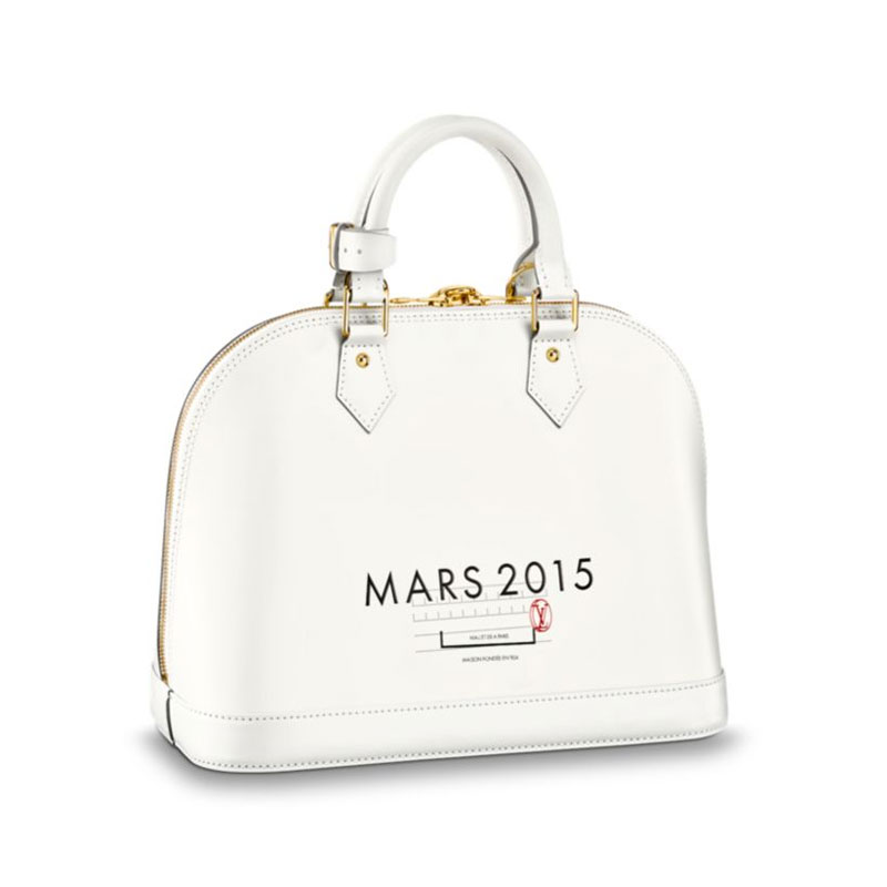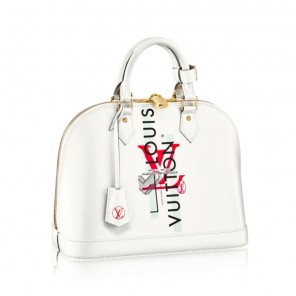 Creative Director Nicolas Ghesqui猫re continues to prove his mastery at reinventing House icons. This bold take on the emblematic Alma was the hit bag of the Fall 2015 runway: the Signature motif mixes architectural details and a celebration of the LV logo in a surprising, original design, matching ready-to-wear looks. Printed and embossed on smooth Epi leather, the exclusive pattern highlights the craftsmanship for which Vuitton is renowned.