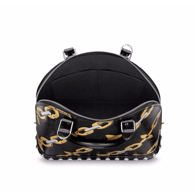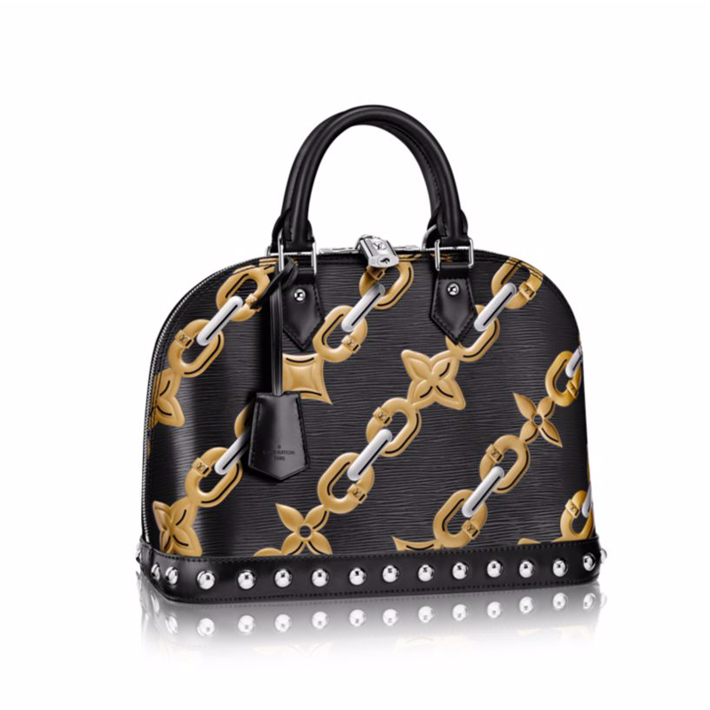 This contemporary version of the classic Alma is embellished with the signature Chain Flower pattern from the Spring 2016 show. Embossed on the grained Epi leather, the motifs creates textural contrasts that give the bag a fashionable richness. The removable shoulder strap adds another possible carry.
