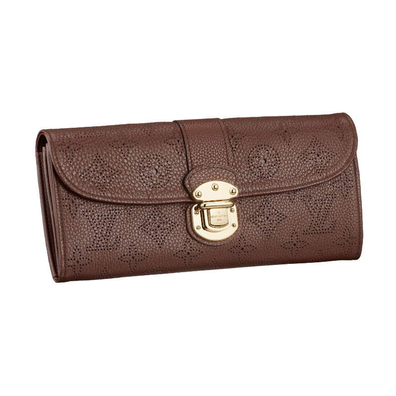 A feminine clutch in soft and supple Mahina leather and perforated Monogram that also happens to be a practical wallet. Its sheer versatility makes it ideal for either day or evening use.