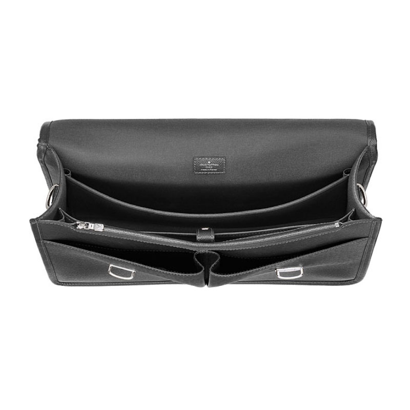 Anton is inspired by the traditional school bag. Fashioned in Taiga leather, it has distinctive Louis Vuitton engraved press locks and a foamed computer compartment.