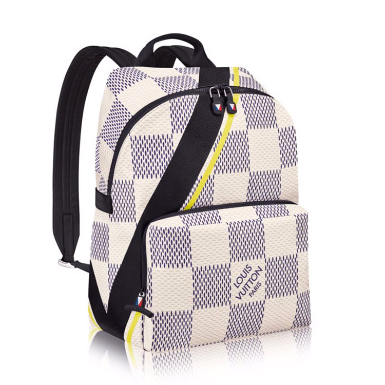 For the 2017 America鈥檚 Cup Collection, the House introduces Damier Latitude, an oversized version of the damier, embelished by a modern reinterpretation of the vertical V Gaston. Generously sized and detailed with sporty nautical touches, this pack is set to travel the world and its seven seas.
